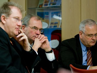 Von links: Klaus Emmerling (Chef vom Dienst, »Unsere Familie«), Hans-Jürgen Hendriock (Geschäftsführer, Bischoff-Verlag), Peter Wild (Reporter, »Unsere Familie«)