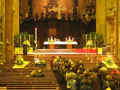 03.04.2005: Nach der Andacht konnten sich die Gläubigen in ein Kondolenzbuch eintragen