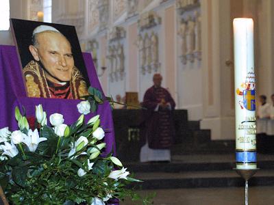 06.04.2005: Blumen und Kerzen zum Gedenken an das verstorbene Kirchenoberhaupt