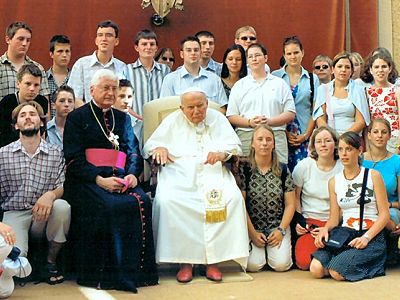 Rückblick: Johannes Paul II. empfängt Teilnehmer einer Jugendfahrt in seiner Sommerresidenz Castel Gandolfo (August 2004)