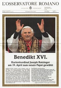 Papst Benedikt XVI. auf dem Titel der deutschsprachigen Ausgabe der Vatikanzeitung »L`Osservatore Romano« (22. April 2005)