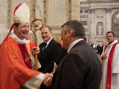 Kardinal Lajolo mit dem Vorsteher der NAK-Gemeinde Rom