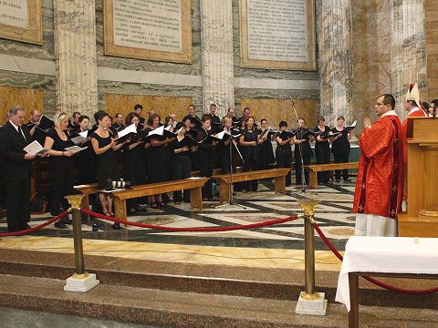 Gemeinsamer Schlussgesang – »Konzertchor Südhessen« und Kardinal Lajolo