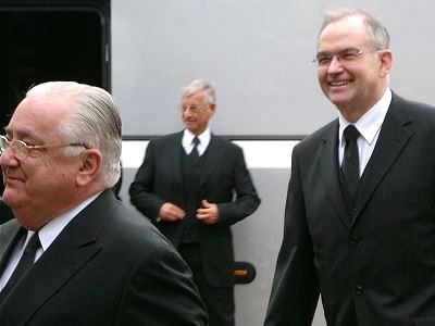 Stammapostel Richard Fehr (links), Bezirksapostel Wilfried Klingler (Bildmitte), Bezirksapostel Wilhelm Leber (rechts)