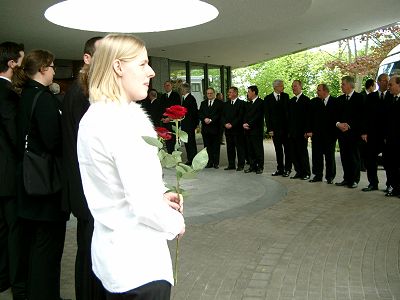 Spalier vor der Kirche: Rosen für den Stammapostel