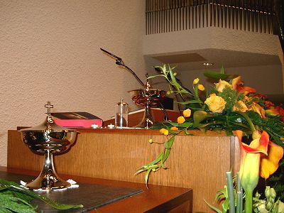 Geschmückter Altar in der Kirche Stuttgart-Fellbach