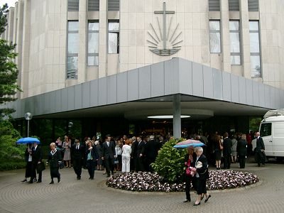 Nach dem Gottesdienst: Geschwister beim Verlassen der Kirche