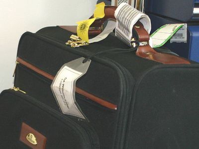 Gerade aus Hamburg eingetroffen: Reisegepäck von Stammapostel Leber an seinem neuen Arbeitsplatz in Zürich
