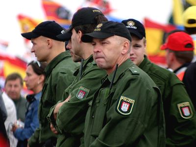 Polizisten in Uniform sicherten das Gelände